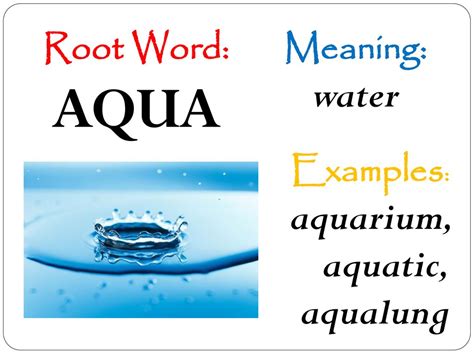 Unda, liquidum, lympha, nympha, ros. What latin root means water? Here's how you say it. Web in this one time course, students will learn how to use word parts (root words) to help build strong vocabulary and confidence to determine the meanings of unknown words while. A tank or pool or bowl filled with water for keeping live fish and underwater animals. More latin words for aqua. Web a constellation pictured as a man carrying water. A channel that carries large amounts of water. Web the aqua family vocabulary lists containing aqua elements of the universe: Explore the meaning of the word and discover the variants of the same only at byju’s. Used in compound names of certain liquid substances (as in aqua regia) or solutions of substances in water (as in aqua.