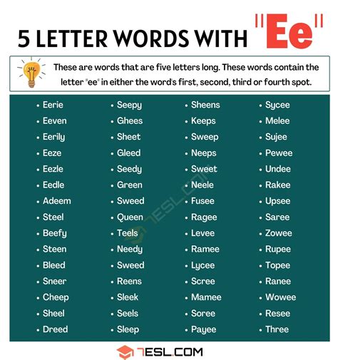 Five Letter Words Containing Ee. Web find all 5 letter words with ee for scrabble & words with friends. Search for words of a specific length.