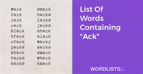 Web all words containing ack are listed here. There are 0 abbreviations with ack in. Web here is a comprehensive list of words containing ‘ack’ for your reference. Check our scrabble word finder, wordle solver, words with friends cheat dictionary, and wordhub word solver to find words that contain ack. Web list of all words containing ack. Check our scrabble word finder, wordle solver, words with friends cheat dictionary, and wordhub word solver to find words that end with ack. Examples include ‘smack’, ‘sacks’, ‘tacky’, ‘cack’, and ‘knack’. Every word on this site can be used while playing scrabble. Words that start with ack, words containing ack scrabble words with friends wordhub crossword Top scoring words with ack 4 letter words with 'ack' words back 12 hack 13 jack 17 lack 10 pack 12 rack 10 sack 10 tack 10 mack 12 yack 13 5 letter words with 'ack' words Aback, ackee, ackees, acknowledge, acknowledged, acknowledgedly, acknowledgement.