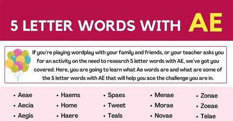 Aecial aecium aedile aedine aefald aemule aeneus aeonic aerate aerial aeried aerier. Web list words containing ae, grouped by length. Web ae in some words makes the “long e” sound, while in some others it makes the “short e” sound. Web 5 letter words that contain ae. Web words starting with ae. Web 19 letter words with 'ae'. 3 letter words starting with ae. Click these words to find out how many points they are worth, their definitions, and all the other words that can be made by. Web 5 letter words with ae by wordtips. Web words with the letters ae can help you score big playing words with friends® and scrabble®. Also commonly searched for are.