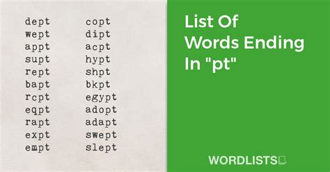Words Ending Pt. Apt, opt, dipt, kept, lept, rapt, sept, wept, adapt, adept Web words ending in pt for scrabble and words with friends by wordtips.